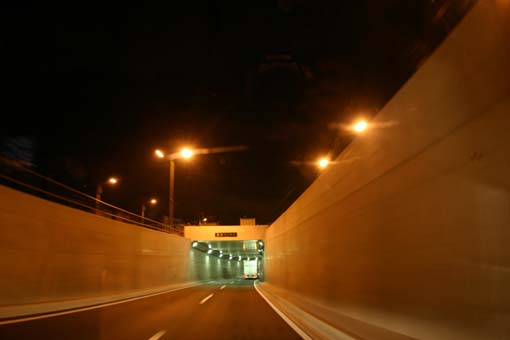 ↓ まだ暗い首都高速を走行!