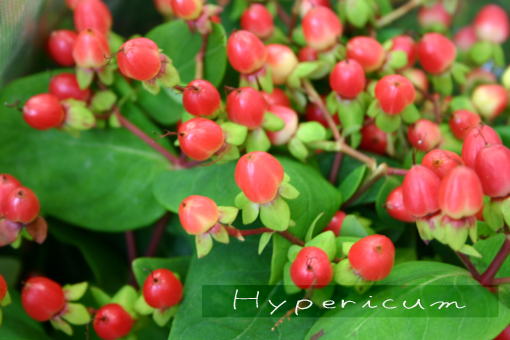 ヒペリカムの切花は、実を使いアレンジします。鉢物だと実も花も楽しむ事ができて良いと思うのですが、あまり欲しがる方はいません。