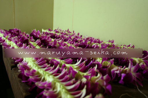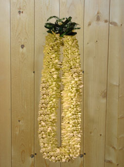 ↑Leiにするとこんな感じ!チューベローズのレイは、主にKuiでニードルにらせん状に刺していくDouble Leiが多いですかね?