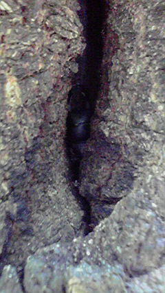 最後は、クワガタだ!何処にいるか見える?日中だったから木の割れている奥に身をひそめてる!