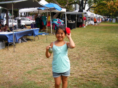 ここでは、頭に花を一輪つけていても普通の事 みんなの耳にプルメリアが挿してあるから